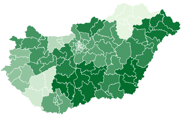 - Budapest főváros: 15,96 százalék